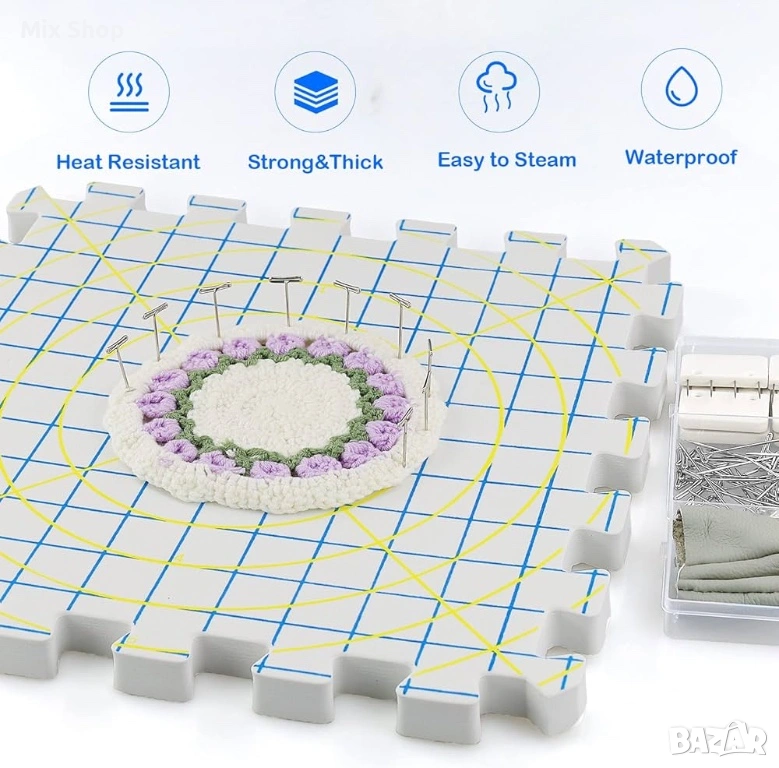 Перфектни за всички ваши проекти за плетене – Проектирани с мисъл за прецизност и издръжливост, тези взаимосвързани блокиращи подложки могат да се сглобяват като пъзел и ви позволяват да завършите всеки проект за плетене на една кука или гоблени, който си представите.