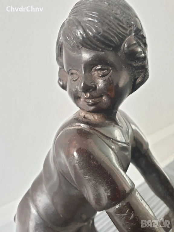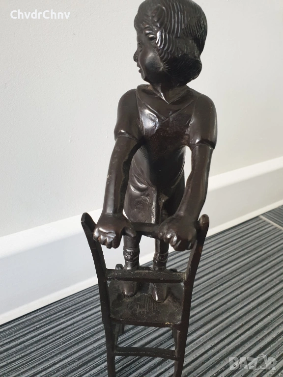 28см-2кг Juan Clara бронзова скулптура/фигура на дете върху стол/испанска статуетка → Обява 53654623