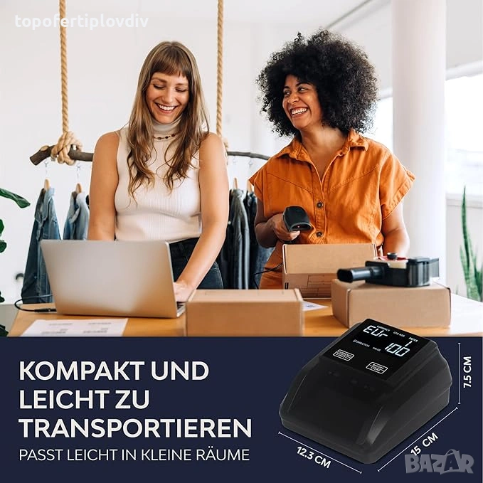 Удобен и мобилен: нашият компактен и лек проверител на банкноти има акумулаторна батерия и е идеален за употреба на закрито и на открито, за да осигури максимална гъвкавост при проверката на банкноти.