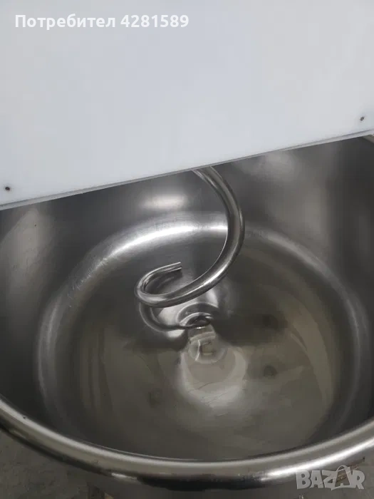 Размери:ширина:80см,дълбочина:115см,височина:130см,тегло:~650кг.Тестомесачката е с 2 скорости-бърза и бавна,ръчно управление,2 часовника,защитен капак.Висококачествена купа от неръждаема стомана,спирала-също от неръждаема стомана.Машината е със сменени лагери на мотора,нови ремъци,обслужена,готова за работа и в топ състояние.