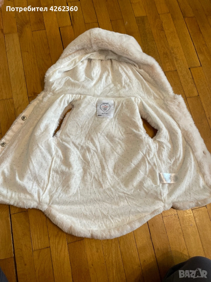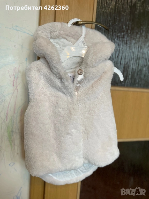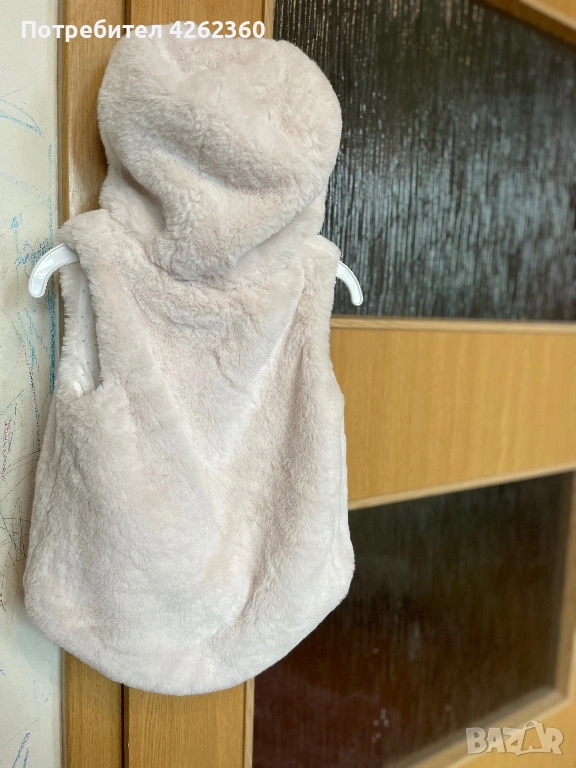 Елегантен мек пух елек с качулка в екрю Primar р-р 86 за 12-18 месно → Обява 53654749