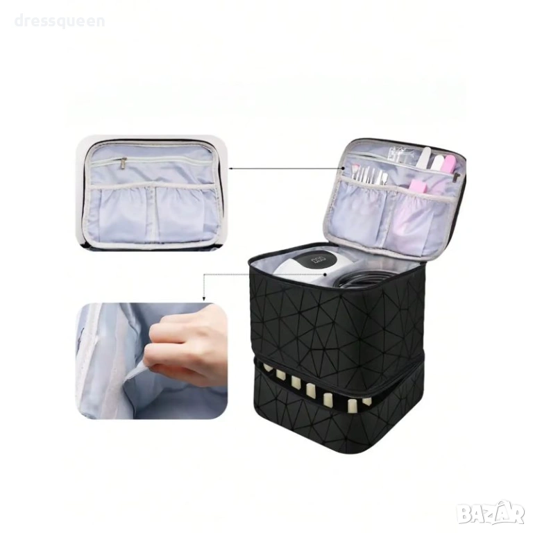 Забележка: Комплектът съдържа 1 бр. двуетажна чанта и 1 бр. разделител. Лампата и лаковете на снимките са само за илюстрация.