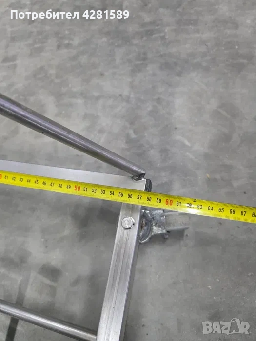 Продавам немска хлебарска транспортна количка от неръждаема стомана за пренасяне на чували и продукти в много добро състояние и следните размери: ширина:69см,дълбочина:57см,височина:55/80см