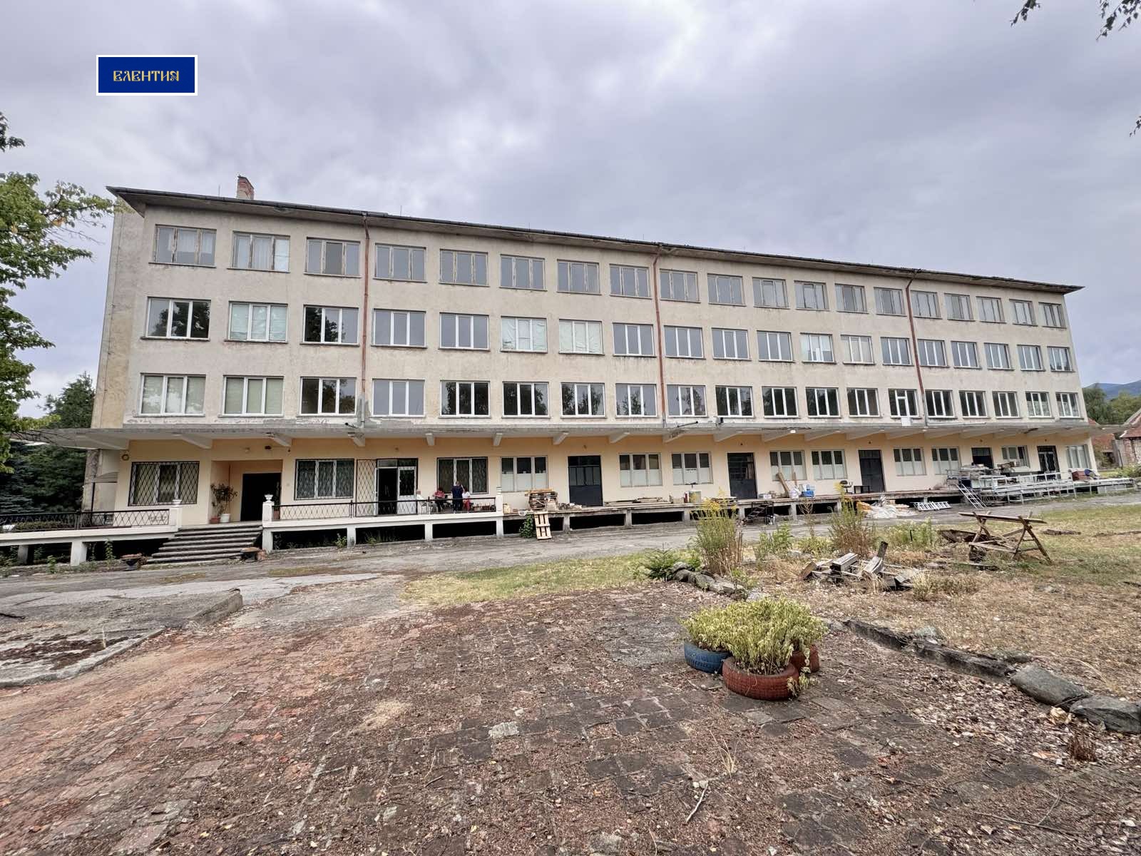 🔧 Сграда с поддържана инфраструктура ел. и ВиК инсталации, подменена дограма, здрава замазка/мозайка, четирискатен покрив.