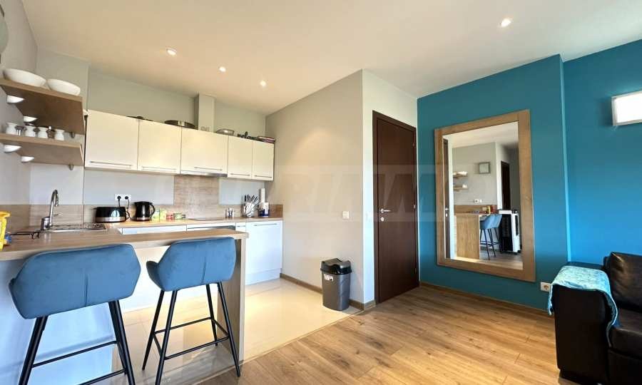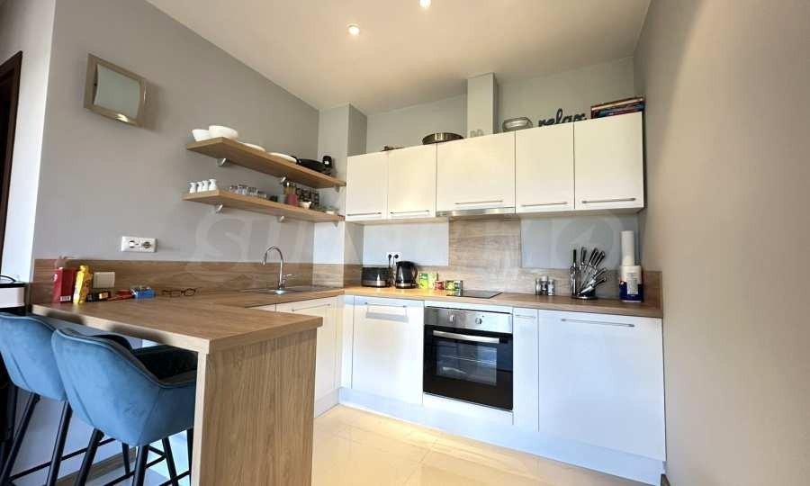 Напълно оборудвана кухня с готварска печка, пералня и хладилник;
