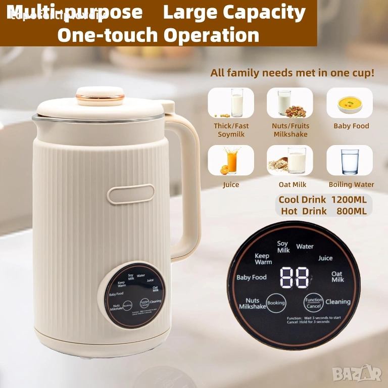 1.2L Family Gold капацитет: подходящ за домакинства от 3-4 души. 800W нагряване + 130W мощност на разбъркване за ефективно разбиване, 4 колони за поток подсилват сблъсъка на съставките за гладка и копринена текстура - просто започнете качествен живот.