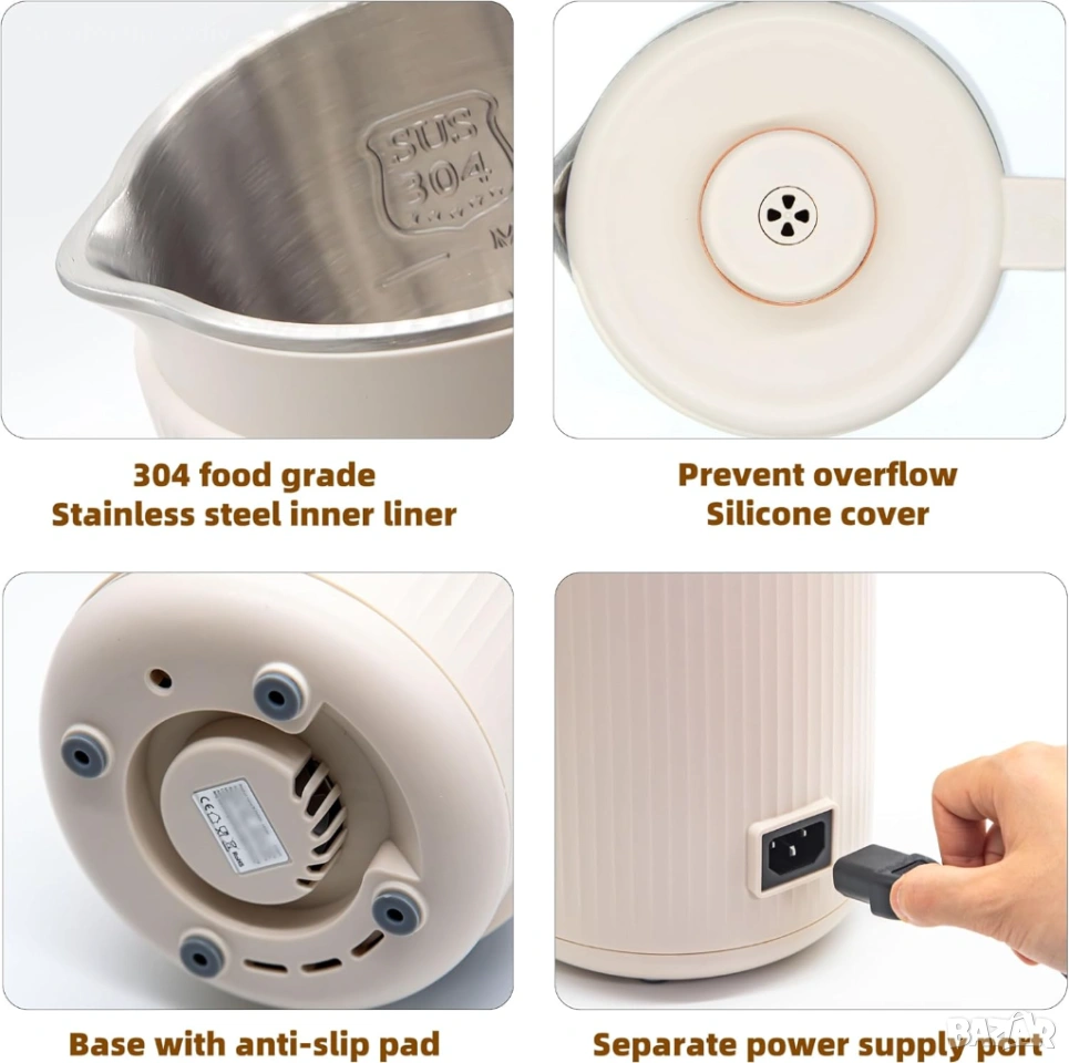 5 мерки за безопасност: вътрешна стена от стомана 304 + многослоен топлоизолационен защитен капак + електронна предпазна ключалка + силиконов дизайн против преливане + противоплъзгаща защита, осигуряващи пълна безопасност при употреба.