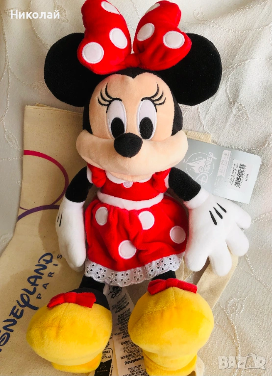 Оригинална плюшена играчка Мини Маус. Размери – 33 х 15 х 12 см. (идеален размер за гушкане и пътуване). Подарък - ленена торбичка 30 години Disneyland Paris.