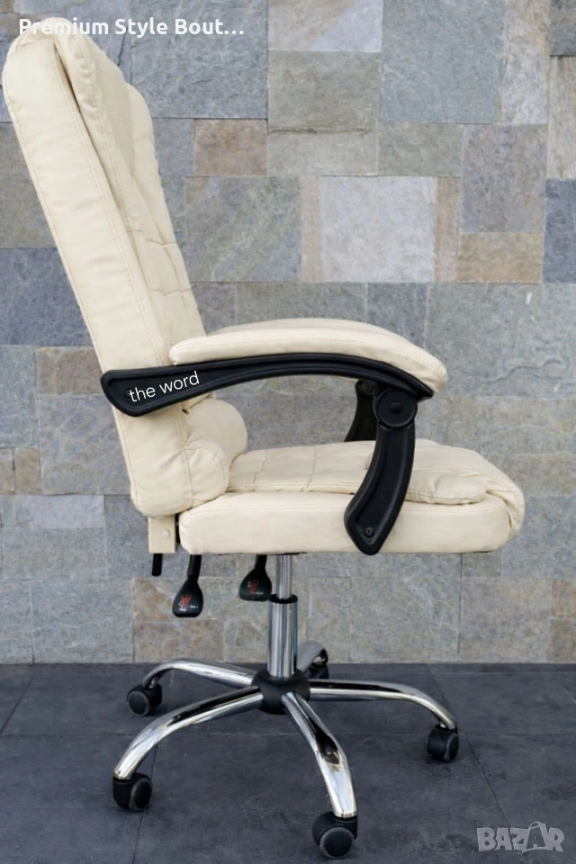 Технически характеристики на Ергономичен офис стол с лумбална опора от еко кожа в бежов цвят – комфорт за дълги часове без болки Основни спецификации, които гарантират надеждност и удобство: Тип: въртящ се офис стол Механизъм: газов повдигач (клас 2) Тапицерия: еко кожа Пълнеж: високоплътна тапицерска пяна (PPU) Лумбална опора: да Подлакътници: с меки подложки Основа: хромирана кръстосана основа Колела: PU, подходящи за паркет, ламинат и плочки Регулируема височина на седалката: 44–54 см Обща височина: 102–112 см Максимално тегло: 120 кг Изпраща се разглобен