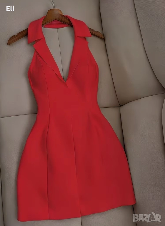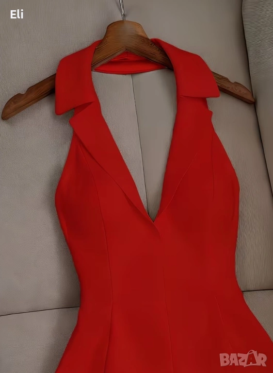 Нова дамска рокля без ръкави с халтер деколте и V-образно изрязване. → Обява 53655313