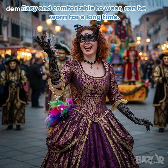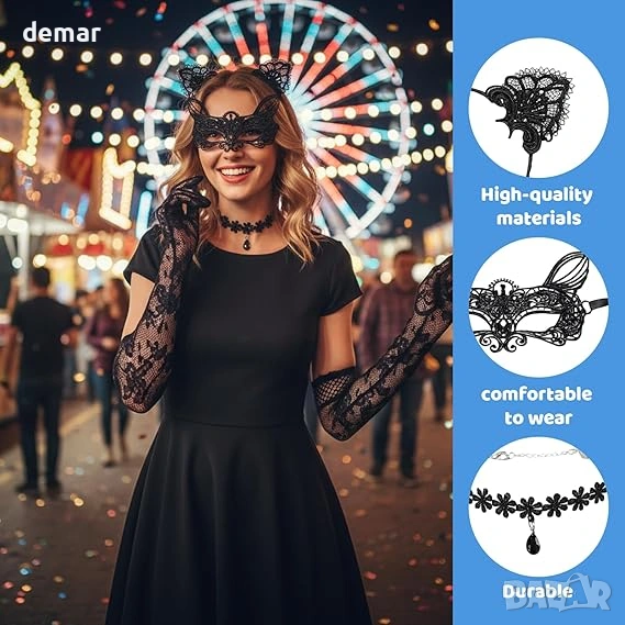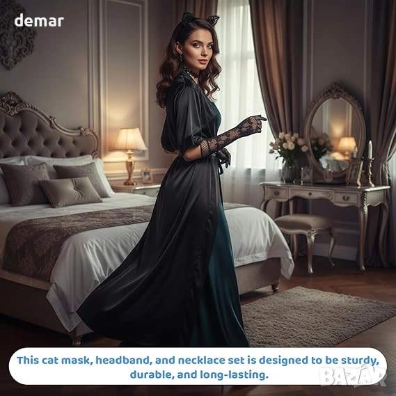 Пълен комплект от 4 части - котешки костюм, включващ лента за глава с уши, ръкавици, лента за врата и маска за очи, проектиран да създаде забавен котешки вид. Изработен от меки, щадящи кожата материали с лека конструкция за удобно носене, той разполага с регулируема лента за глава за сигурно прилягане към различни размери на главата и лесна за носене маска за очи без натиск. Простият дизайн без презрамки позволява бързо и лесно поставяне и сваляне без чужда помощ. Подходящ за костюмирани партита, Хелоуин, маскарадни събития или ежедневно преобличане, комплектът подпомага въображаемата игра, творческото разказване на истории и социалното взаимодействие по време на групови дейности или тематични тържества.
