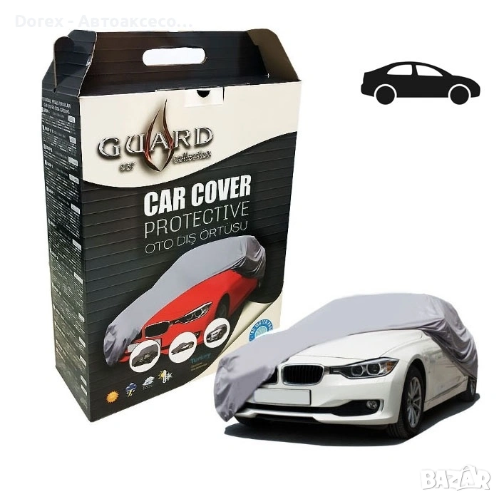 Висококачествено покривало Guard за автомобил, осигуряващо защита от дъжд, сняг, прах, слънце и вятър.Изработено от специален PVC брезент, ламиниран с PP. Вътрешната памучна структура предпазва боята и не предизвиква изпотяване.
