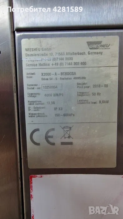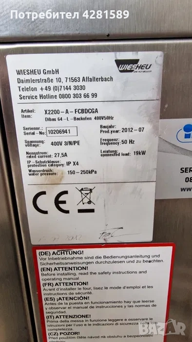 Немски конвектомати-фурни за хлебни и сладкарски изделия Wiesheu за 10 и 5 тави → Обява 53655662