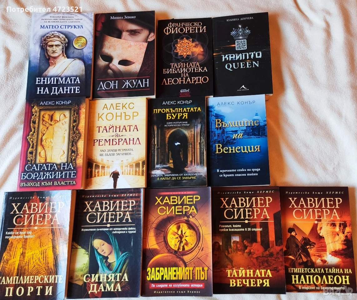 Хавиер Сиера : Забравеният път, Египетската тайна на Наполеон, Тамплиерите порти, Тайната вечеря, Синята дама по 10 евро всяка, при покупка на всички подарък още една книга