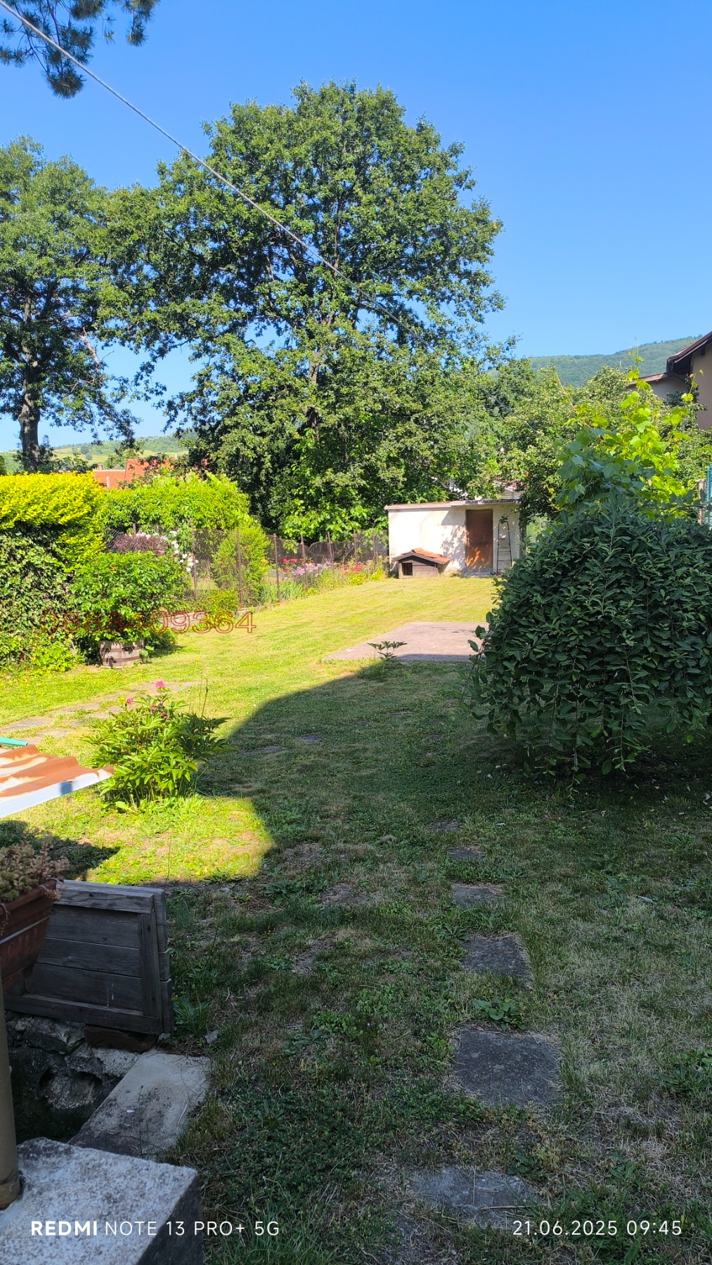 Къщата е близнак с общ двор от 860 м/кв, като двора също е разделен физически (430 кв.м) Прав без наклони. Могат да се вкарват и коли.