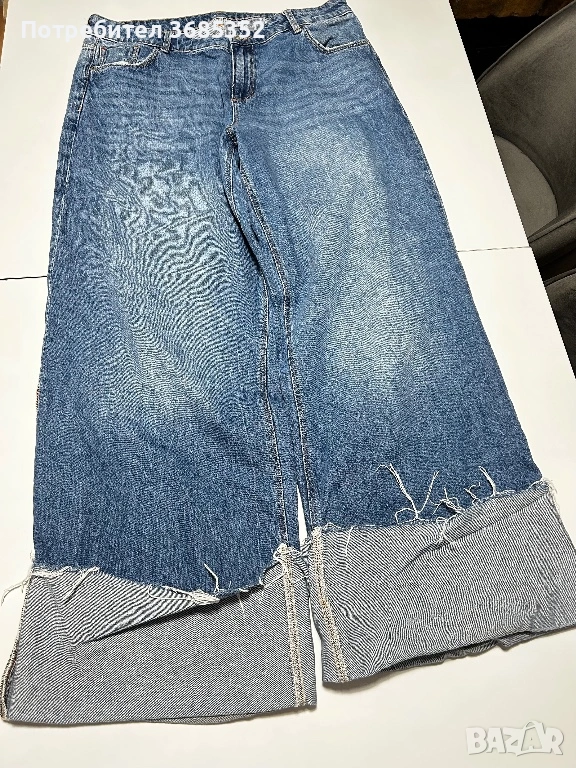 Актуални дамски дънки с подгънат ефект. Обувани само веднъж!!! Широки крачоли. Размер по етикет 44