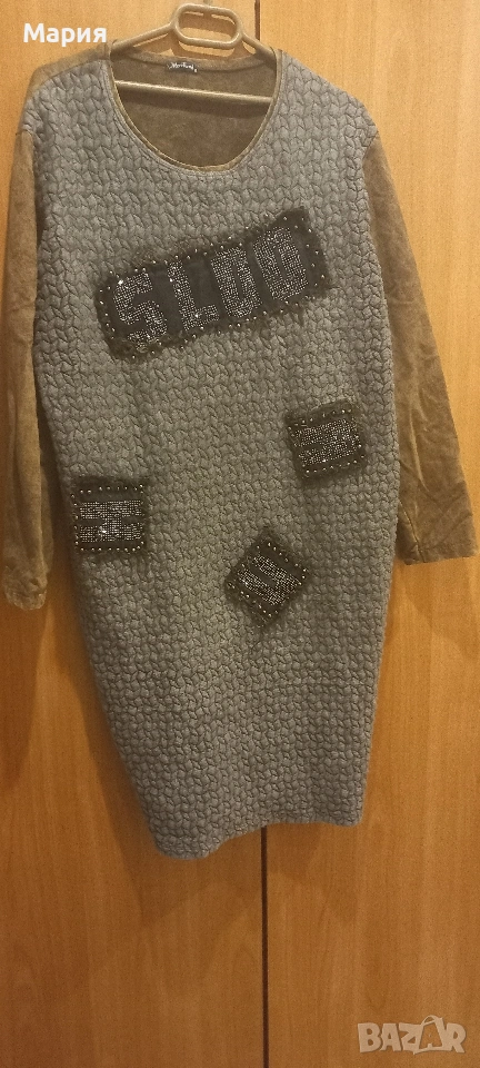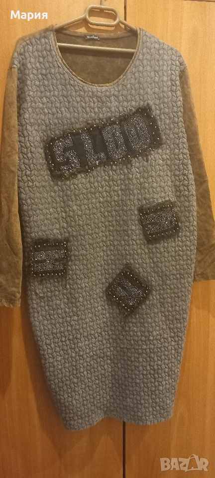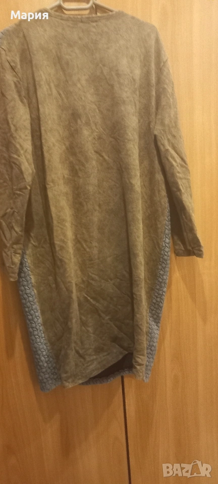Плътна зимна рокля/туника . Цялостна дължина 100 см. Дължина на ръкав 54 см .Гърди 120/130см . Ханш 115/125 . При интерес пишете.
