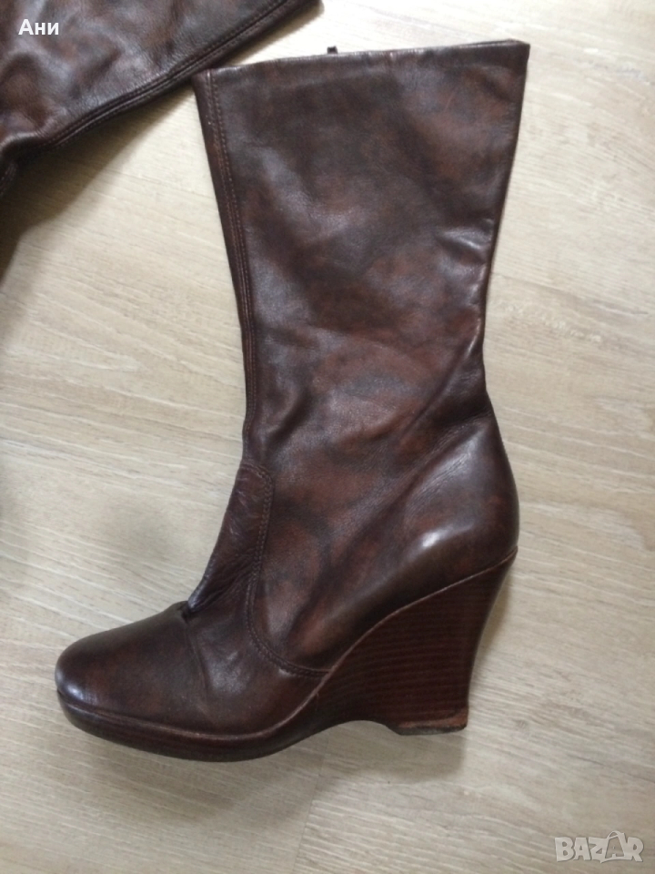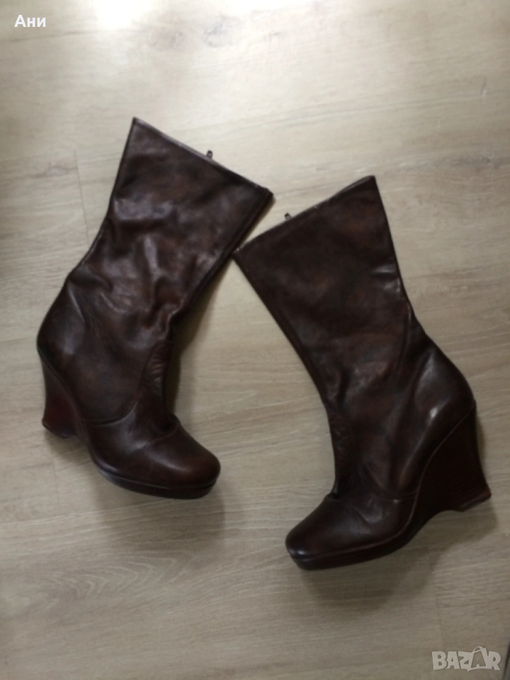 Удобни кафяви ботуши на платформа,естественна кожа. → Обява 53656111