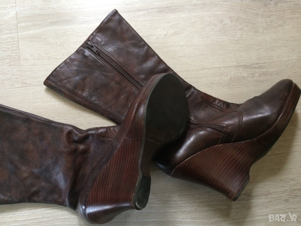 Удобни кафяви ботуши на платформа,естественна кожа.