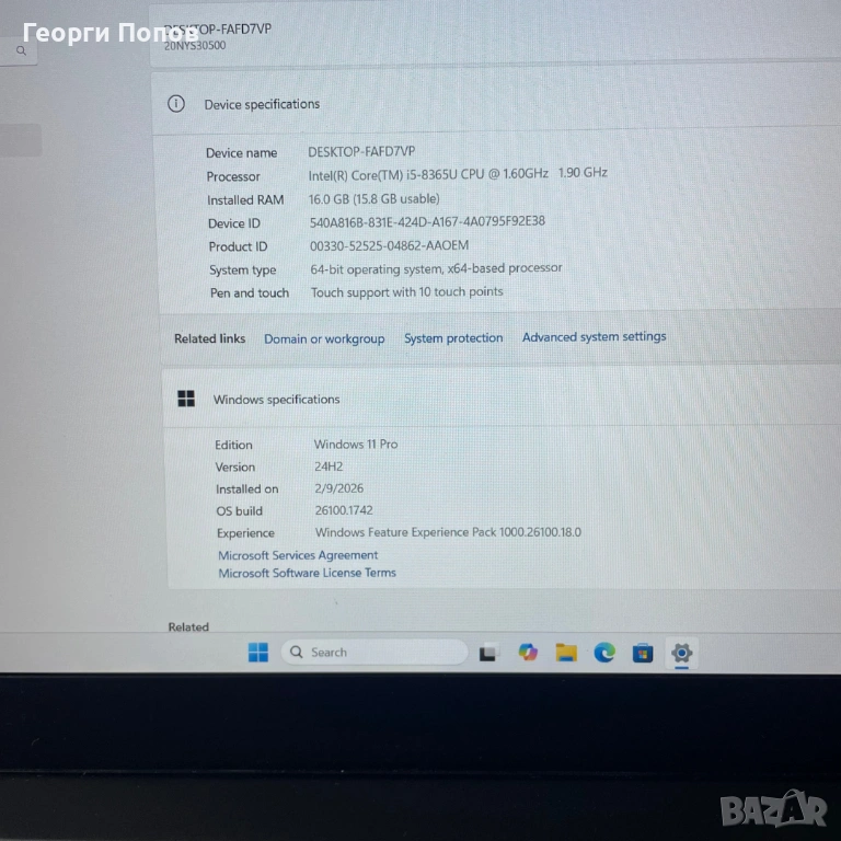 Процесор: Intel Core i5-8365U (4 ядра / 8 нишки, до 4.1 GHz)