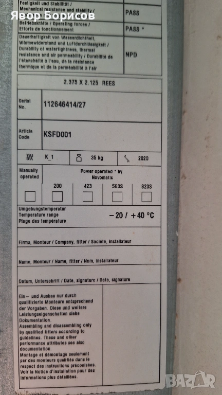 Вратата в момента е монтирана, което позволява купувачът да я види в работещо състояние.