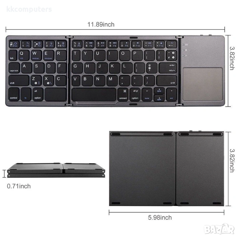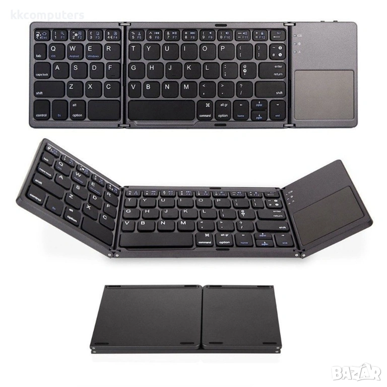 Мини безжичната Bluetooth клавиатура Tri-Fold с тъчпад е практично решение за работа в движение. Сгъваемият ѝ дизайн позволява лесно пренасяне в чанта или раница, което я прави идеална за пътувания, бизнес срещи и дистанционна работа.