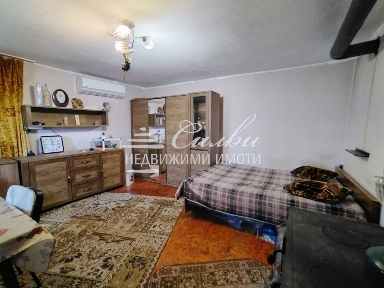 Къщата е с площ от 80кв.м., разположена в парцел с площ от 770 кв.м. Разпределение: ПЪРВИ ЕТАЖ: кухня, хол, две спални, баня и тоалет заедно, стълбище към ВТОРИ ЕТАЖ: ОГРОМНА открита тераса, спалня. Къщата е на ПЛОЧА, след РЕМОНТ и следните подобрения: НОВ ПОКРИВ, НОВА PVC дограма, подовите настилки са ламиниран паркет и теракота. Санитарните помещения са в ОТЛИЧНО състояние. Отоплението е решено посредством печка на твърдо гориво и КЛИМАТИК! Продава се ОБЗАВЕДЕНА с наличните МЕБЕЛИ и ЕЛЕКТРОУРЕДИ. Към имота принадлежат ЛЯТНА КУХНЯ, НАВЕС за паркиране на автомобил, селскостопанска постройка с работилница, НОВОИЗГРАДЕНА постройка, предвидена за банкетна зала, с изградена плоча пред нея за поставяне на БАСЕЙН! Дворът е РАВЕН и ИЗКЛЮЧИТЕЛНО поддържан, с изградени цветни градини и овощни дръвчета.