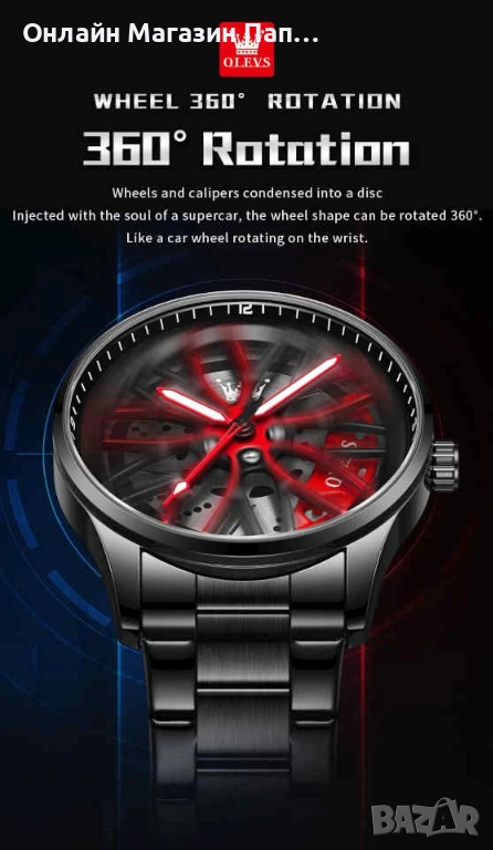 Функции: Устойчив на удари, Луминисцентни стрелки, Водоустойчив, Въртящ се ефект на джанта