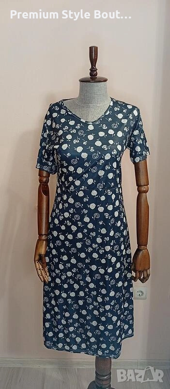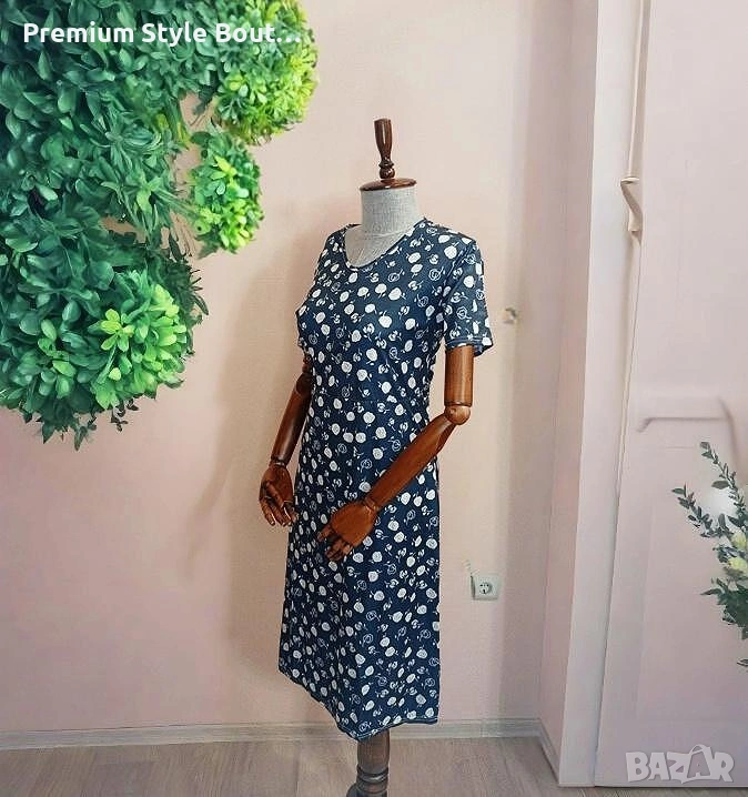 дамска рокля в тъмносин цвят, украсена с фин бял флорален мотив. Изработена от мека и приятна на допир материя, тази рокля е идеална както за ежедневието, така и за по-специални поводи. Със своята класическа кройка, къси ръкави и обло деколте, тя осигурява комфорт и свобода на движение през целия ден. Дължината до коляното я прави подходящ избор за всеки сезон и различни стилови предпочитания. Цвят: Тъмносин с бял принт