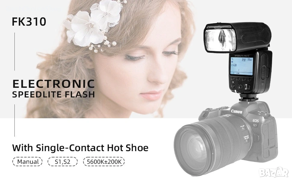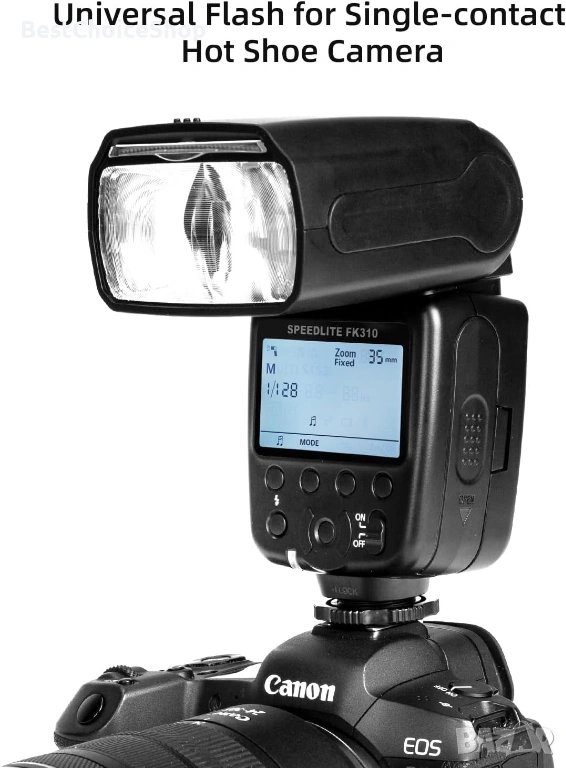 Светкавица PHOTOOLEX Speedlite FK310 за Canon, Nikon, Sony, Panasonic, Olympus, Pentax, Fujifilm, Sigma, Minolta, DSLR фотоапарати и други SLR фотоапарати