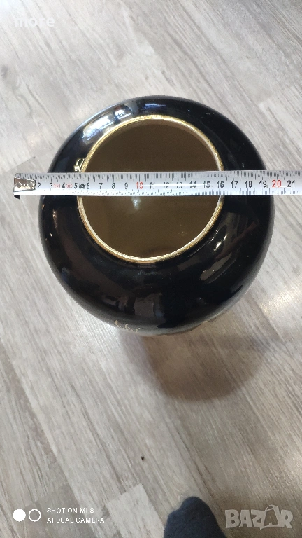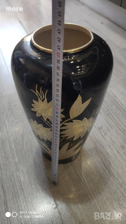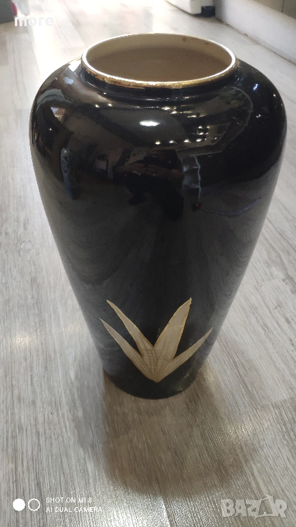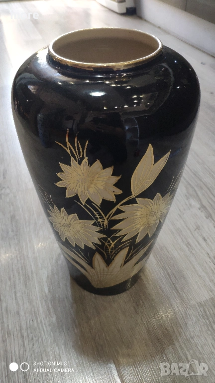 Цвят: Черен лак със златисти цветя, и златен кант на гърлото