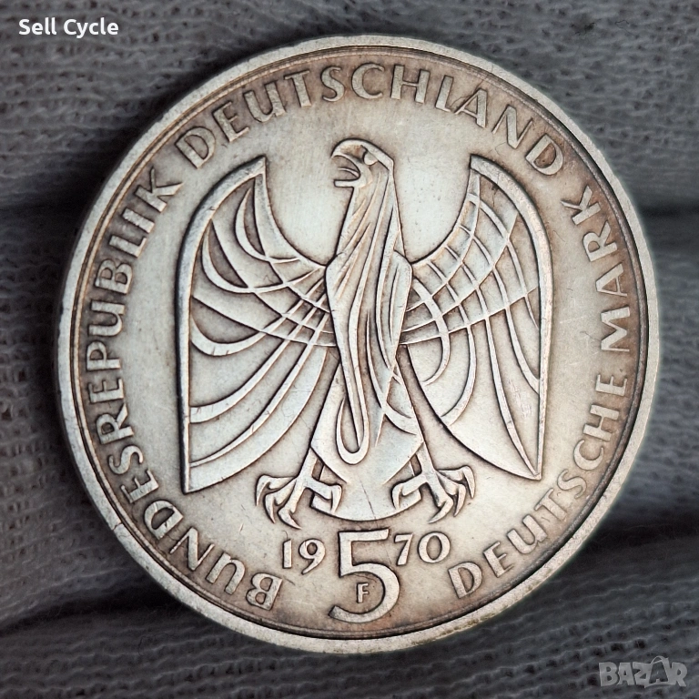 ✅ГЕРМАНИЯ-5 марки 1970 г.-200 г. Бетховен - СРЕБРО❗