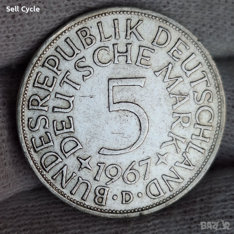 ✅ГЕРМАНИЯ - 5 марки 1967 г. - D - СРЕБРО❗