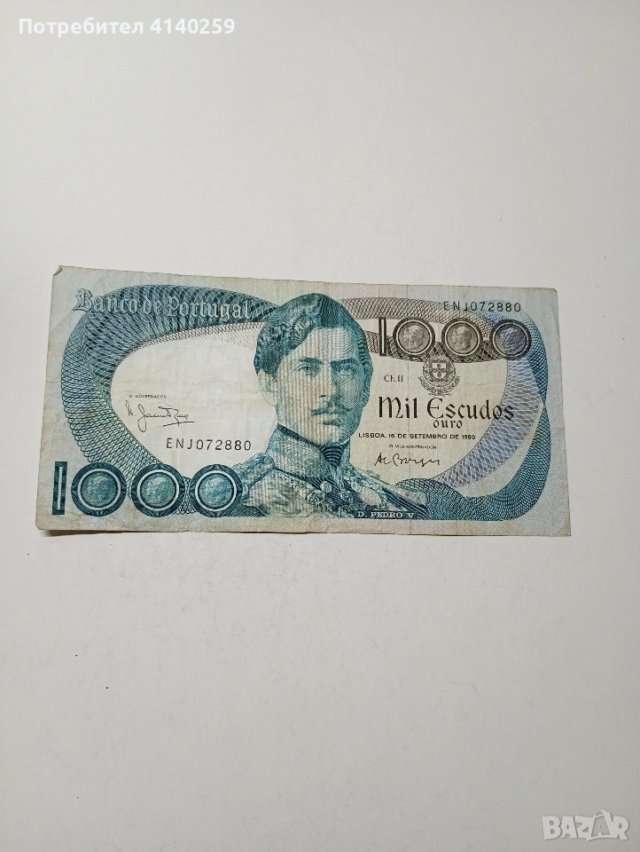 ПОРТУГАЛИЯ БАНКНОТА 1000 ЕСКУДО 1980 Г СЪСТОЯНИЕ ВИДИМО ПОЛУЧАВАТЕ СНИМАНАТА БАНКНОТА РАЗГЛЕДАЙТЕ ДРУГИТЕ МИ ОБЯВИ ДА КОМБИНИРАТЕ ДОСТАВКА ЕКОНТ ЗА ВАРНА ЛИЧНО