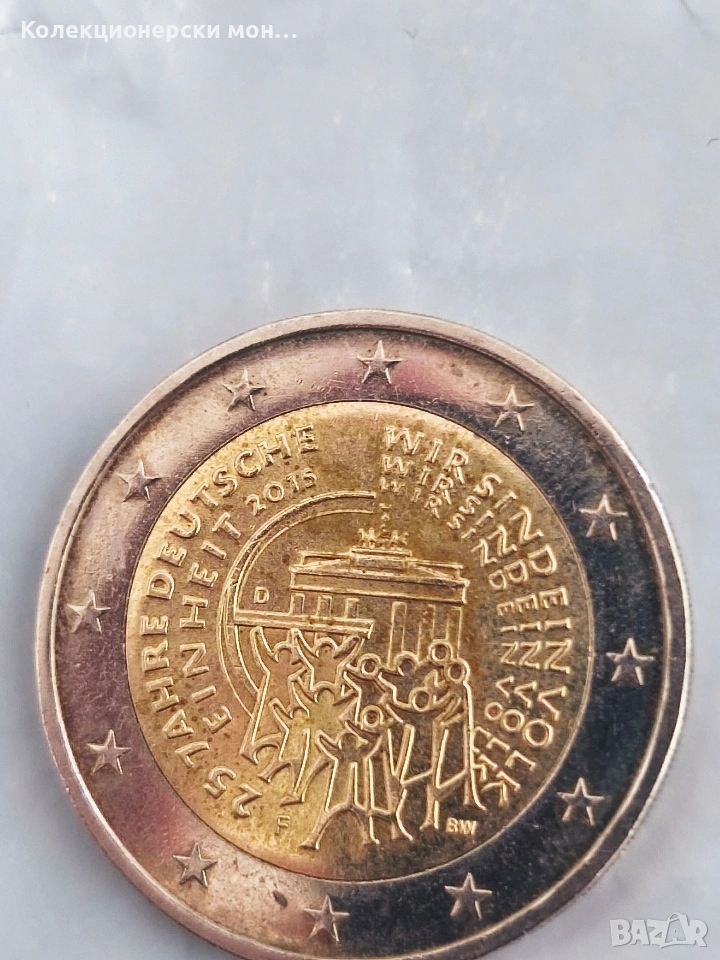 Немска възпоменателна монета от 2 евро, издадена през 2015г. по повод 25 годишнината от обединението на Германия.