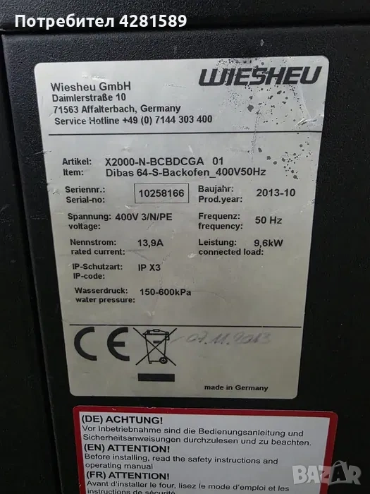 Немски конвектомат Wiesheu Dibas 64 с българско меню → Обява 53657224