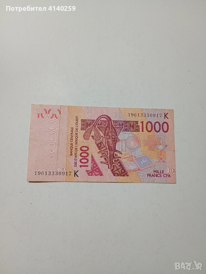 ЗАПАДНА АФРИКА СЕНЕГАЛ БАНКНОТА 1000 ФРАНКА СЪСТОЯНИЕ ОТЛИЧНО ПОЛУЧАВАТЕ СНИМАНАТА БАНКНОТА РАЗГЛЕДАЙТЕ ДРУГИТЕ МИ ОБЯВИ ДА КОМБИНИРАТЕ ДОСТАВКА ЕКОНТ ЗА ВАРНА ЛИЧНО
