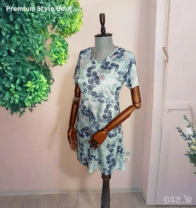 Нежна и ефирна, тази рокля в светлосин цвят с абстрактни тъмносини флорални мотиви е перфектното съчетание на стил и лекота. Изчистеният дизайн с V-образно деколте и деликатно подчертана талия придава женственост и комфорт. Леката материя и свободната кройка правят роклята отличен избор за топлите дни, както за ежедневието, така и за по-специални поводи.