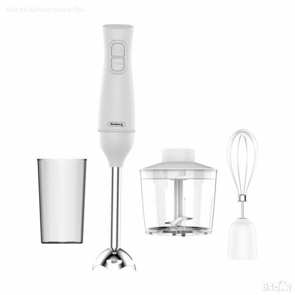 Ръчен пасатор 3 в 1 Rosberg R51112OSC, 350W, Метален накрайник, купа 0.7л., Приставка за разбиване → Обява 53657579
