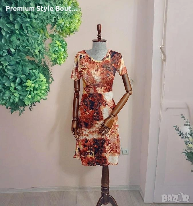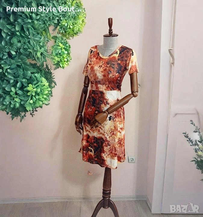 Създай впечатление с тази дръзка и артистична дамска рокля, вдъхновена от топлината на залеза и свободата на четката върху платно. Абстрактният принт в оранжево-кафявата гама е истинско изявление, а еластичната материя осигурява комфорт през целия ден. Семпла кройка, подчертана талия и къс ръкав правят роклята подходяща както за ежедневие, така и за по-небрежни събирания с приятели. Комбинирай с бели маратонки или ниски сандали и бъди звездата на улицата. 🔸 Материя: полиестер с еластичност 🔸 Цвят: микс от оранжево, кафяво, кремаво 🔸 Подходяща за: пролет, лято, есен 🔸 Дължина: до коляното 🔸 Стил: ежедневен, артистичен, casual chic: