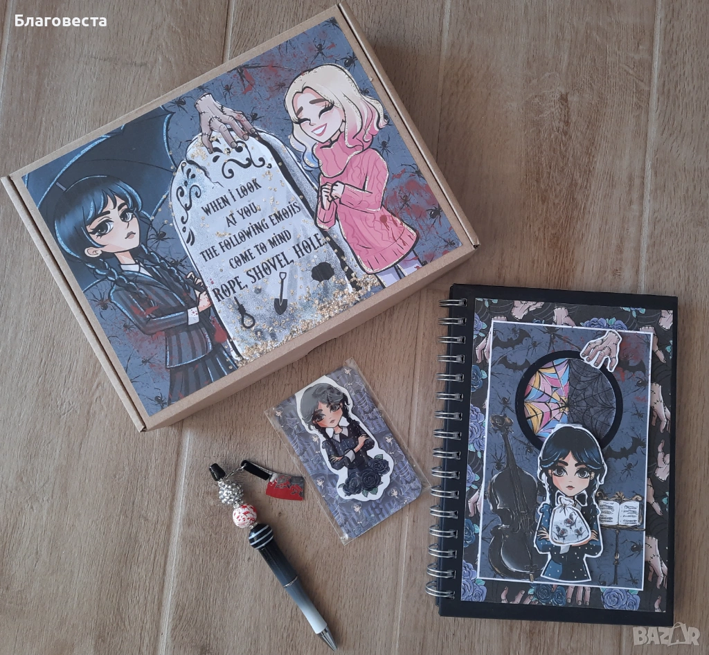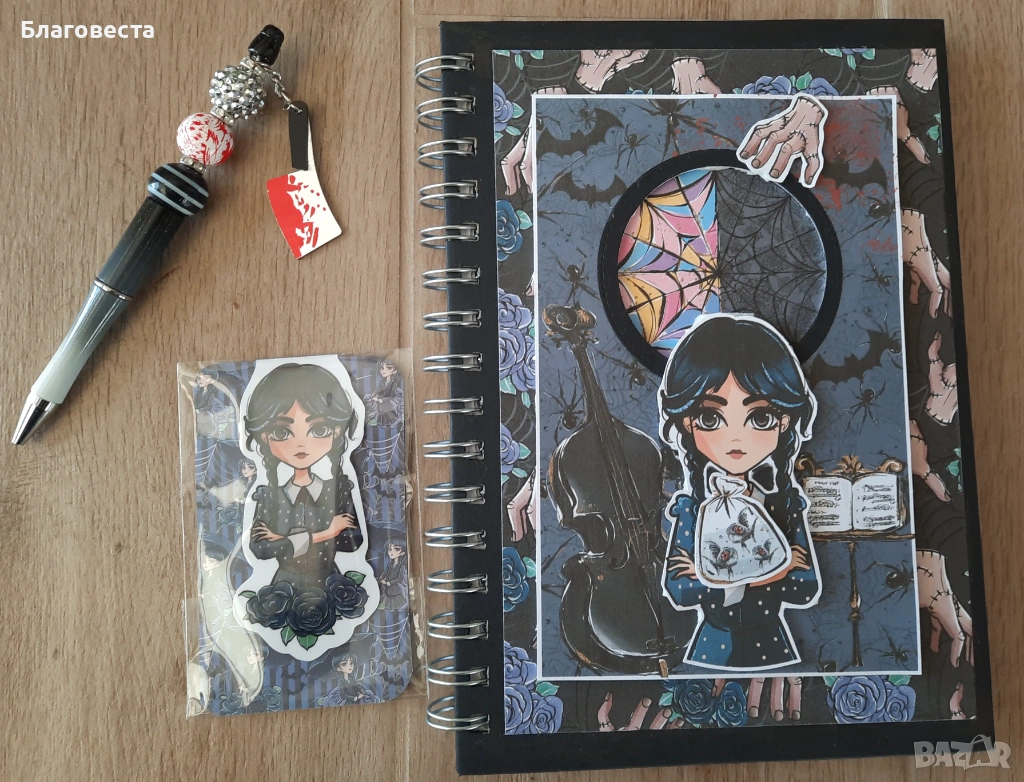 Сет: тефтер, химикал и книгоразделител на Wednesday → Обява 53657922