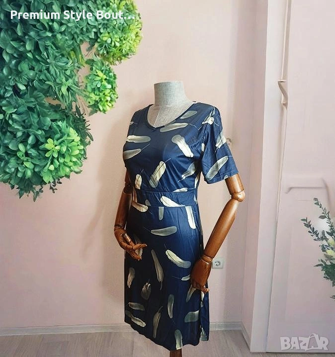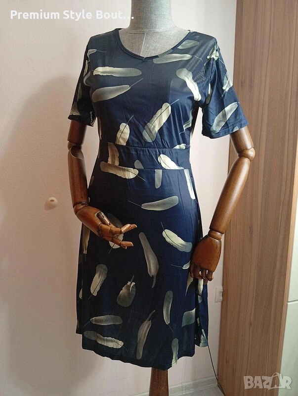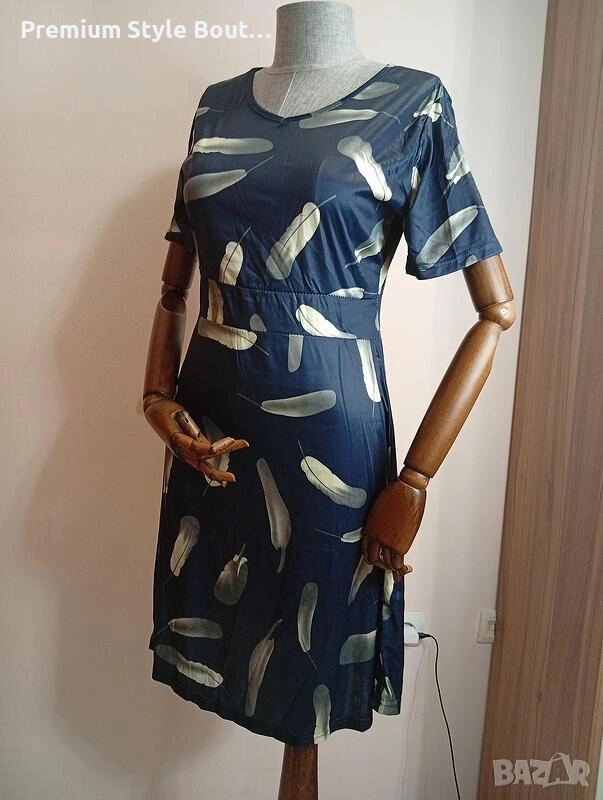 Тъмносиня дамска рокля с артистичен принт – комфорт с характер