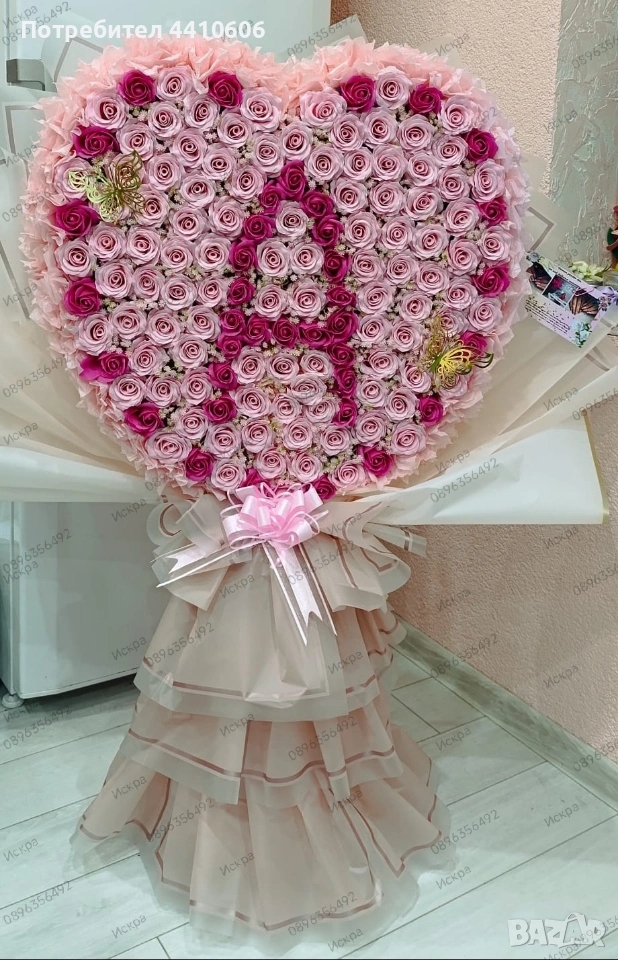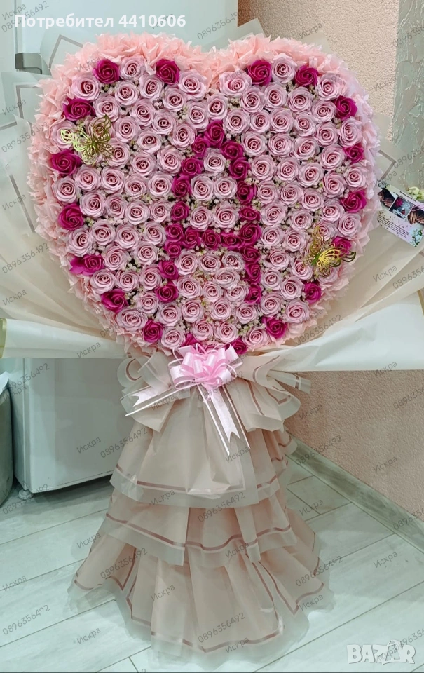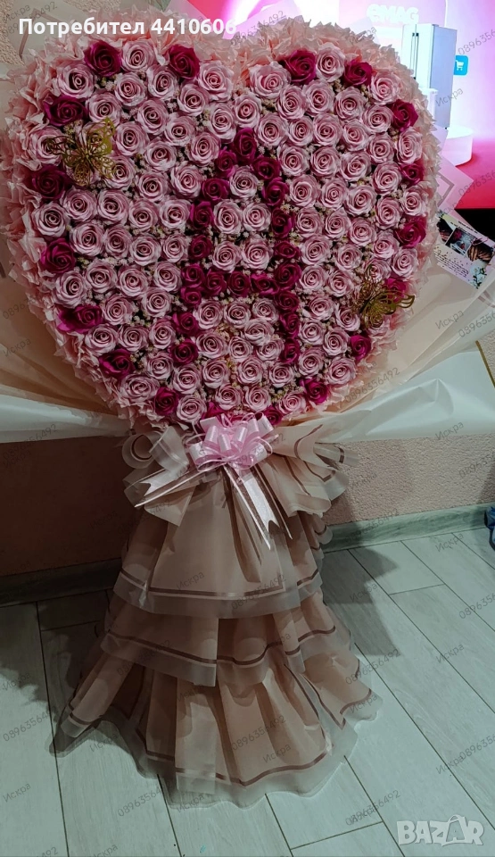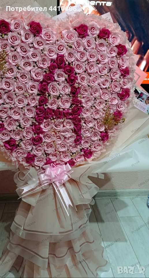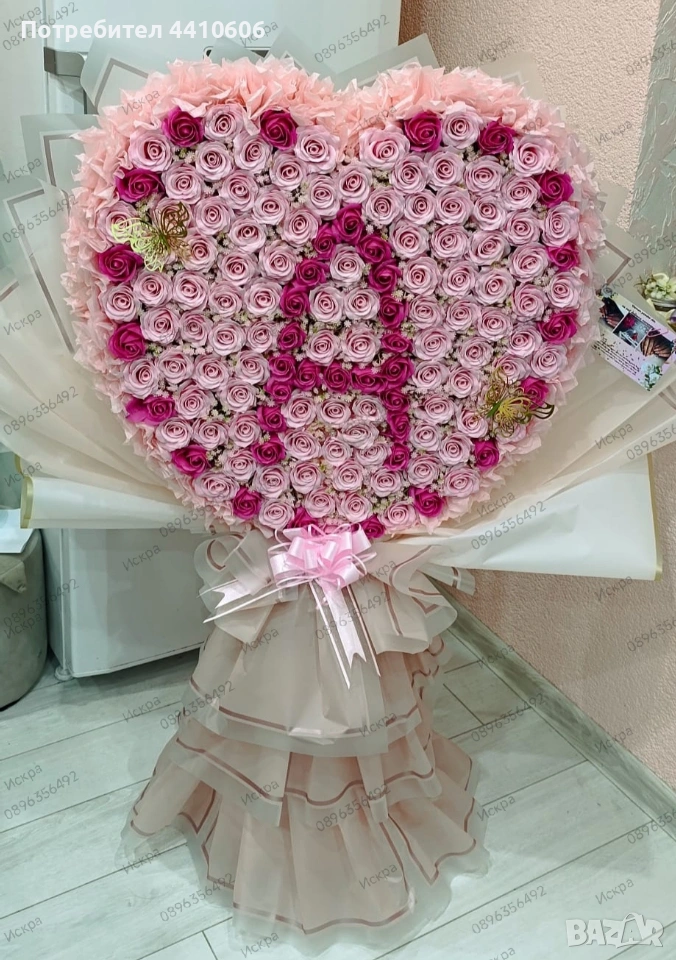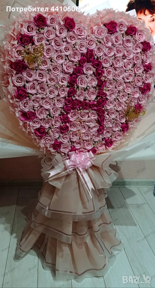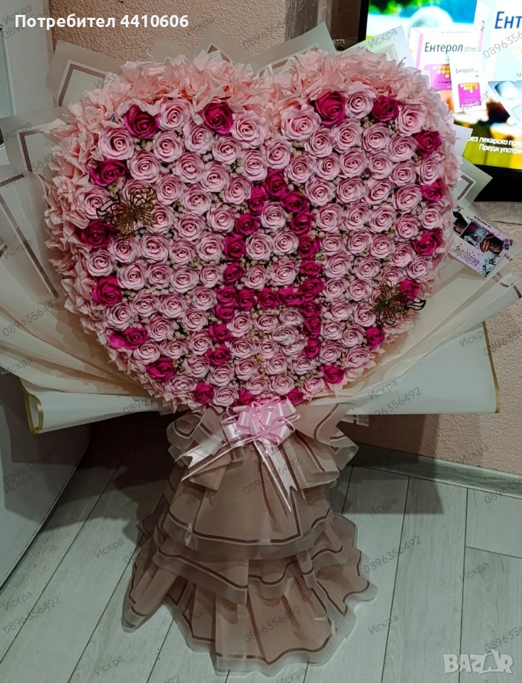 Ръчно изработен букет, сърцевиден шедьовър от 139 сапунени рози → Обява 53658128
