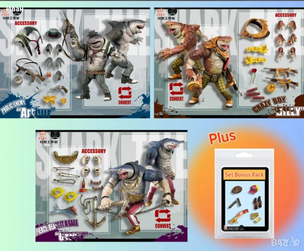Акулите гангстери Циганина, Артър и Били, снимка 1 - Фигурки - 53658193 Акулите гангстери Циганина, Артър и Били, снимка 2 - Фигурки - 53658193 Акулите гангстери Циганина, Артър и Били, снимка 3 - Фигурки - 53658193 Акулите гангстери Циганина, Артър и Били, снимка 4 - Фигурки - 53658193 Акулите гангстери Циганина, Артър и Били, снимка 5 - Фигурки - 53658193 1/5