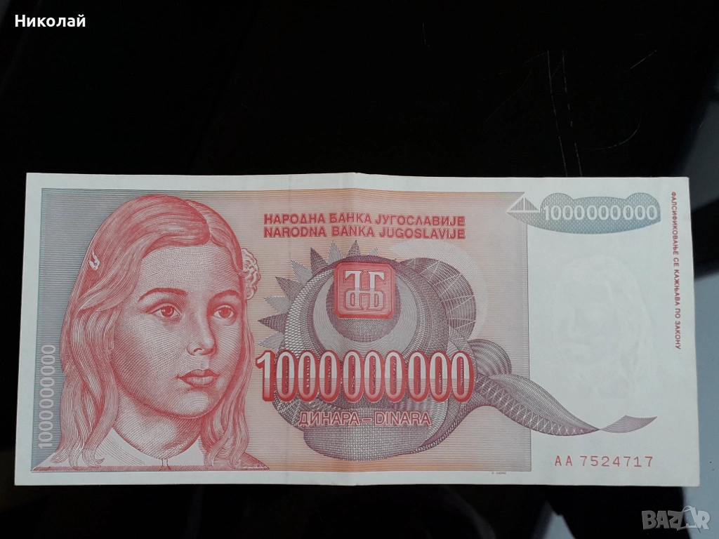 банкнота от 1 000 000 000 динара /един милиярд/ Югославия.
