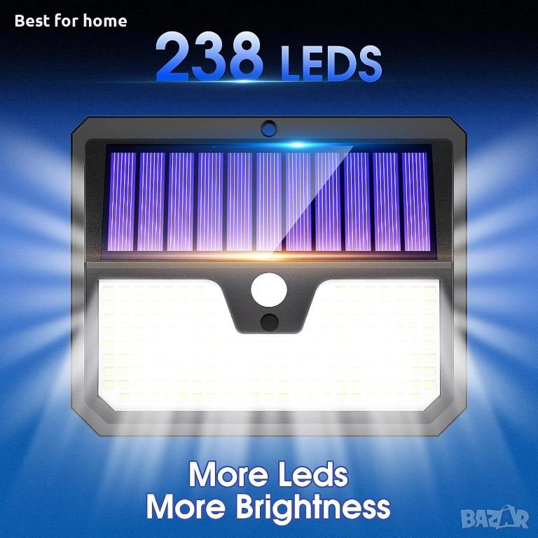 Външни слънчеви лампи, 238 LED слънчеви охранителни лампи и 3 режима на работа
