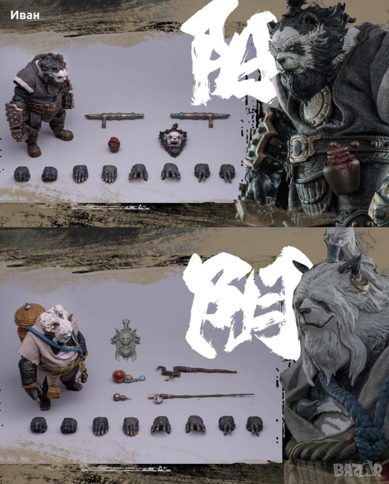 Братята панди ИН и ЯН са родени от родители, които са лекари. И двамата братя се интересуват от медицински науки, бойни изкуства , но имат различни разбирания за медицинските изкуства. Те се ядосват един на друг и се отнасят един към друг като към врагове. По-големият брат ИН вярва, че Ци е първоначалният източник на духа. Той изучава телесна акупунктура и билкови лекарства, за да кондиционира Ци и кръвта. По-малкият брат Ян следва разбирането си, че силното тяло е основата на живота. Той се фокусира върху китайския бокс и е добър в хирургията, масажа за наместване на кости, както и в оперативното лечение и анестезиологията. Тези двама нови герои ще се появят във включения комикс. Заедно те ще се присъединят към членовете на главния екип от герои в изграждането на още вълнуващи истории. Фигурките се предлагат с PVC и платнени дрехи за повече възможности за показване. Характеристики на продукта: Височина 8,26 инча (21 см) Мащаб 1/12 Изработен от PVC, POM и плат Базиран на комиксовата поредица FuRay Planet 23 точки на артикулация Взаимозаменяеми части и аксесоари Високо детайлно Съдържание на кутията Фигурка на Ян 2 скулптури на глави 10 алтернативни ръце Комплект дрехи от плат Комплект дрехи от PVC Буркан за вино Железен Т-образен прът 2 предпазни нагръдника 2 железни ръкавици Комплект брони за краката Броня за гърдите Комикс