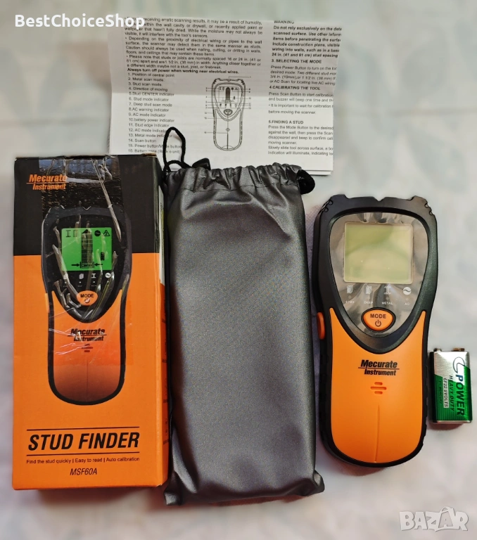 Mecurate Stud Finder (модел PH03322C062), електронен стенен скенер 5-в-1 с LCD дисплей.