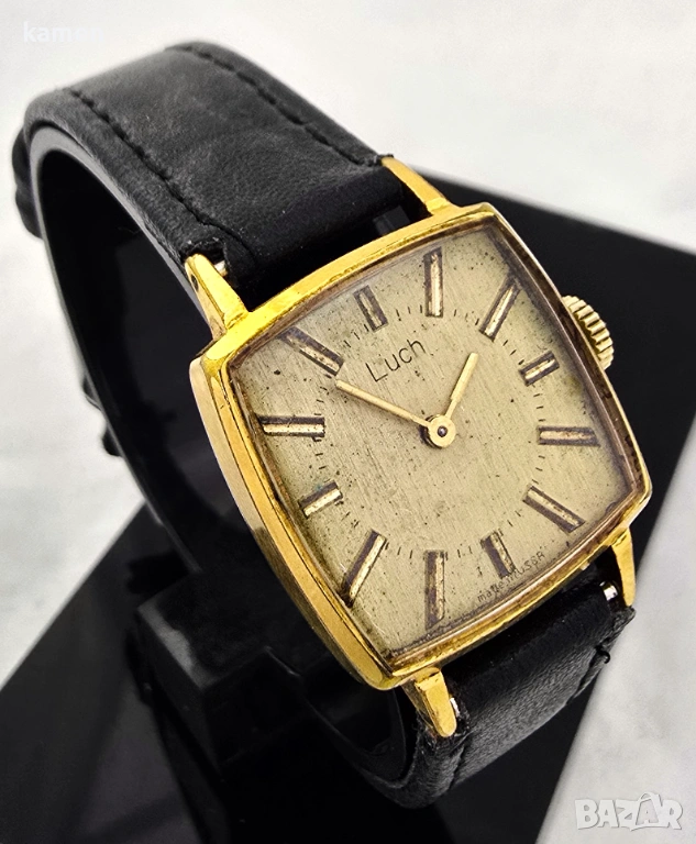 Механизъм: Оригинален съветски механичен механизъм с ръчно навиване, подписан с автентичното лого на Luch. Чист и добре запазен, както се вижда на снимките.