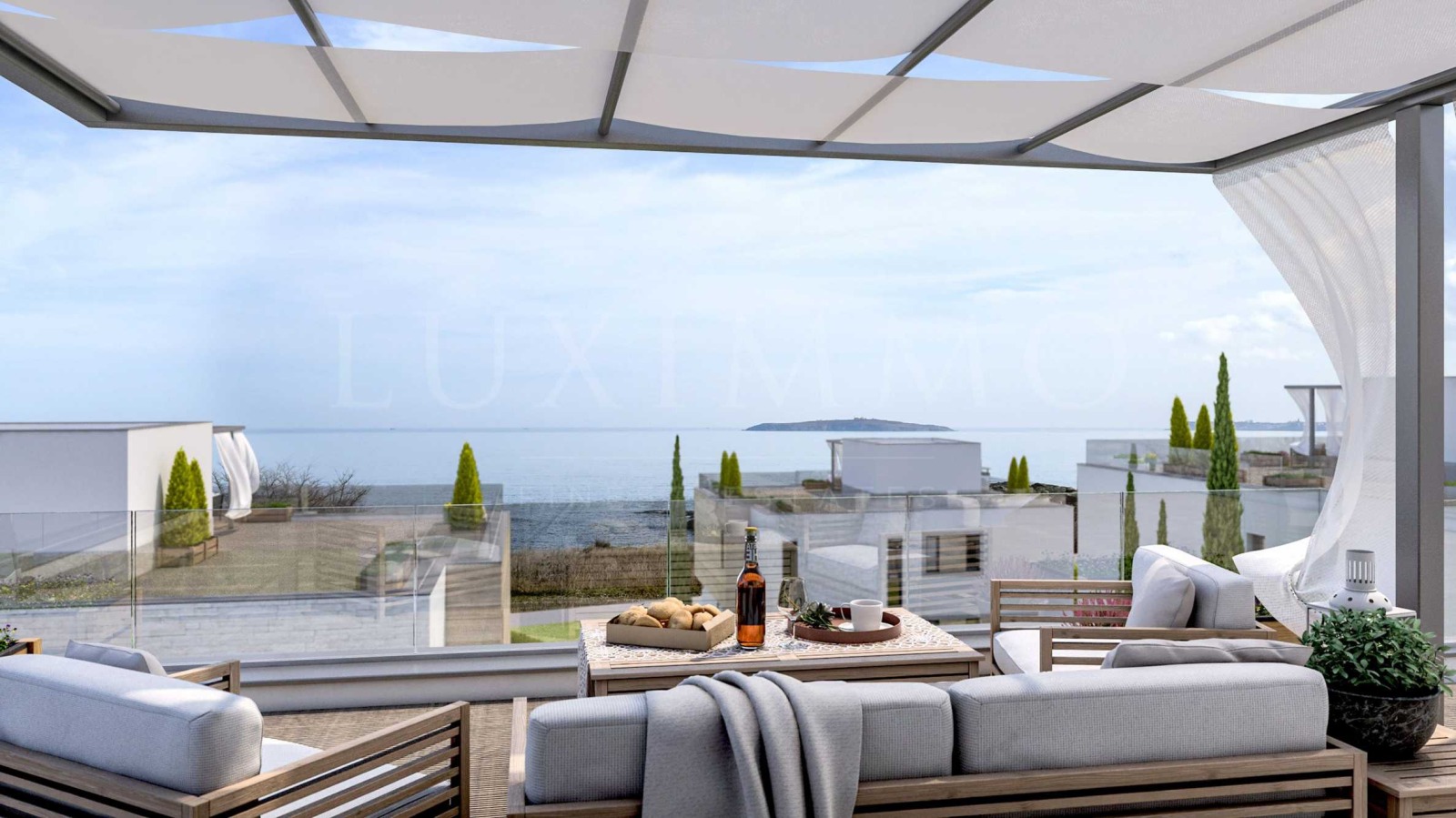 Проектирани на 3 нива, имотите са ориентирани към морето, с панорама към морския залив и остров 'Св. Иван'.